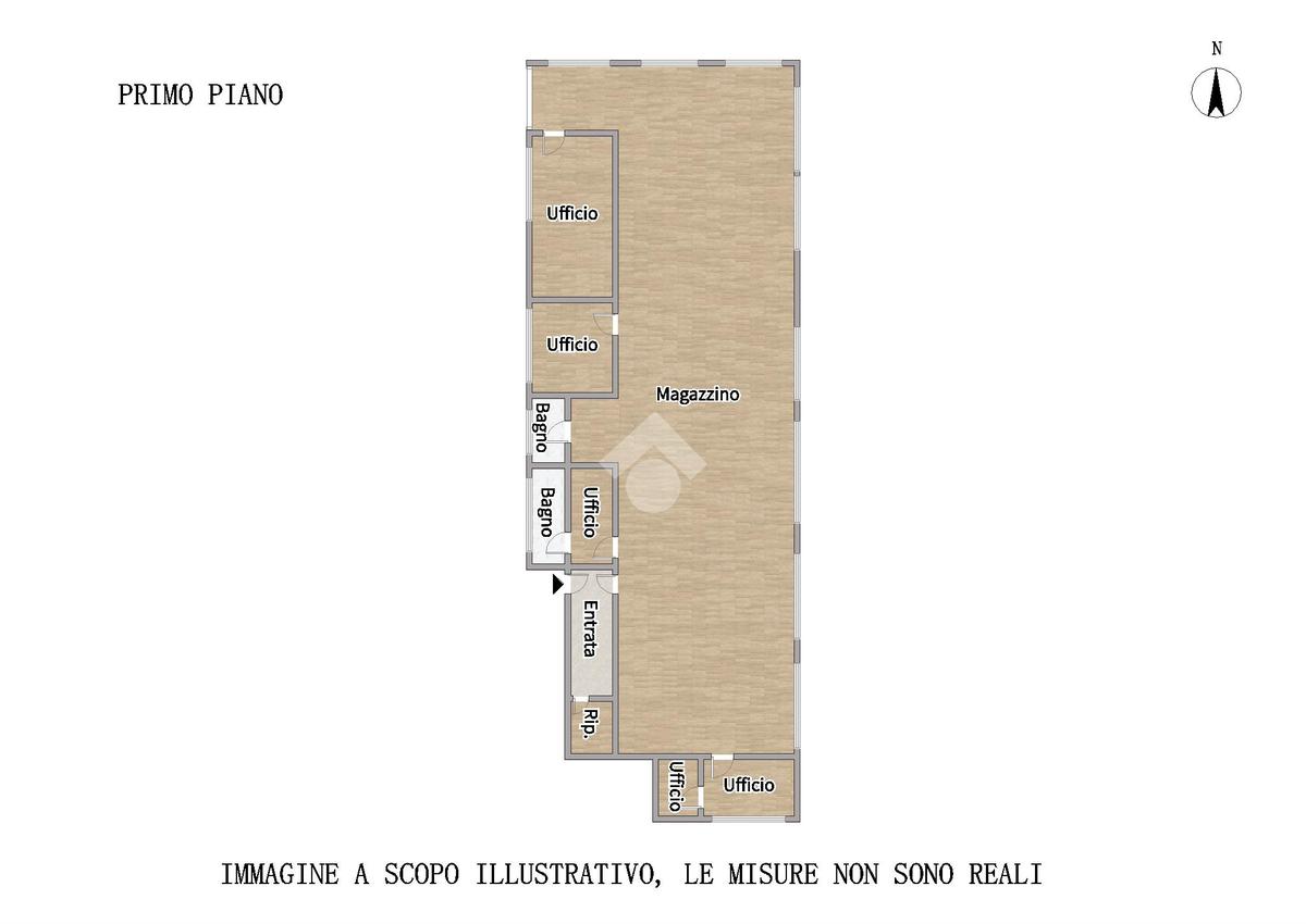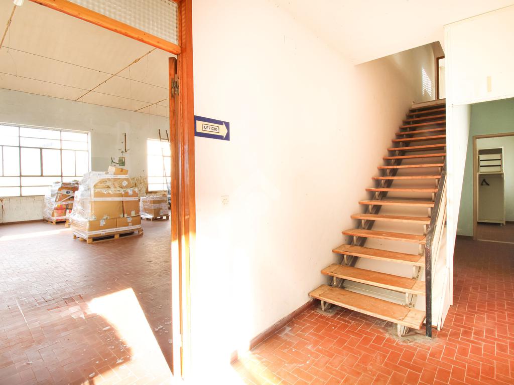 La soluzione consiste in un ampio magazzino, predisposto per ospitare attività commerciali che necessitano di ampio laboratorio o deposito, con sussistenza di uffici, stanze di servizio, spogliatoi e grande area utile per carico e scarico merci.