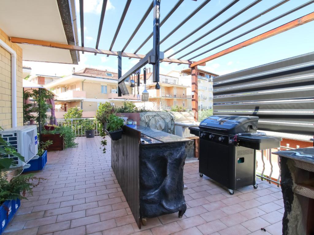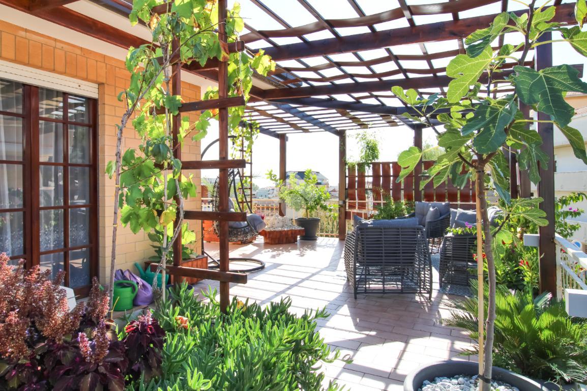 Lo spazio esterno, elegantemente arredato, offre una zona barbecue attrezzata, un’area pranzo all’aperto ideale per ricevere ospiti, e diversi angoli relax pensati per ogni momento della giornata, incluso un’esclusiva area con vasca idromassaggio da cui godere di una suggestiva vista mare.