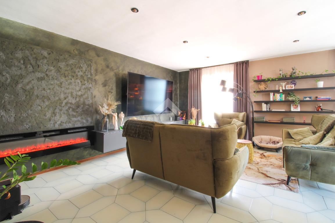 Soluzione esclusiva di ampia metratura, composta dallo spazioso living d’ingresso con angolo relax e zona pranzo che introduce alla nuova cucina.