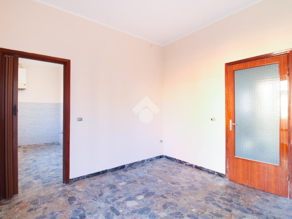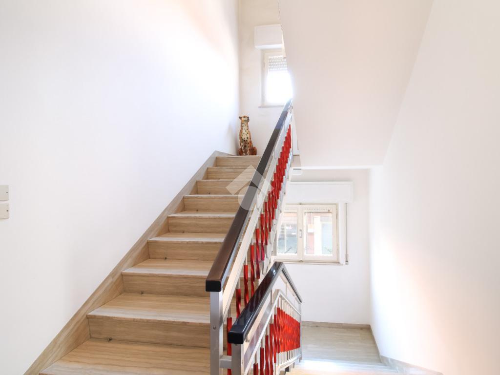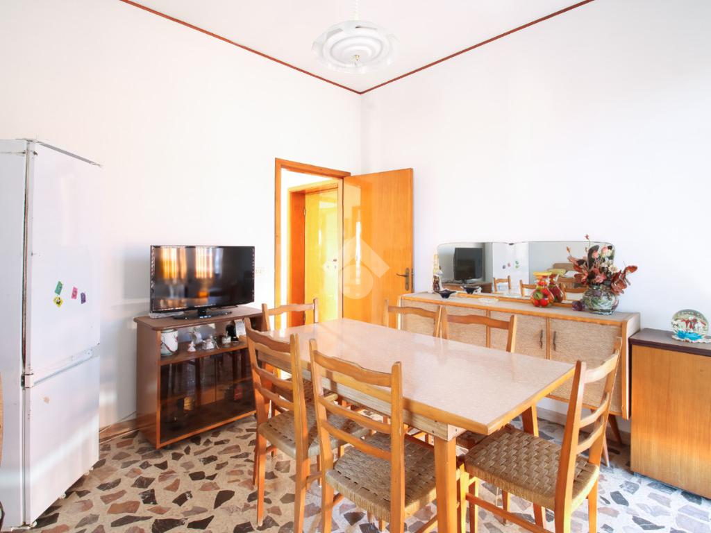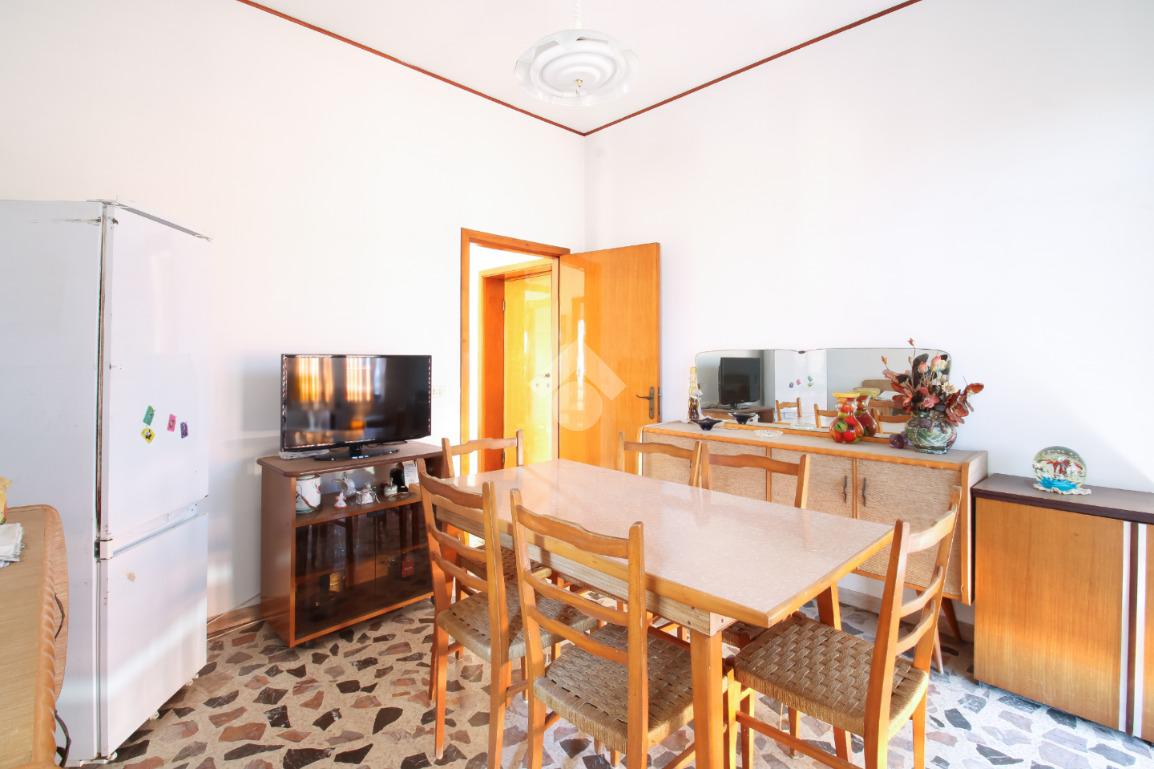 Il primo piano ospita un appartamento composto da corridoio di ingresso, sala da pranzo con accesso al balcone, cucinotto separato; corridoio, tre camere matrimoniali tutte dotate di sfogo esterno ed infine bagno finestrato ristrutturato con box doccia.