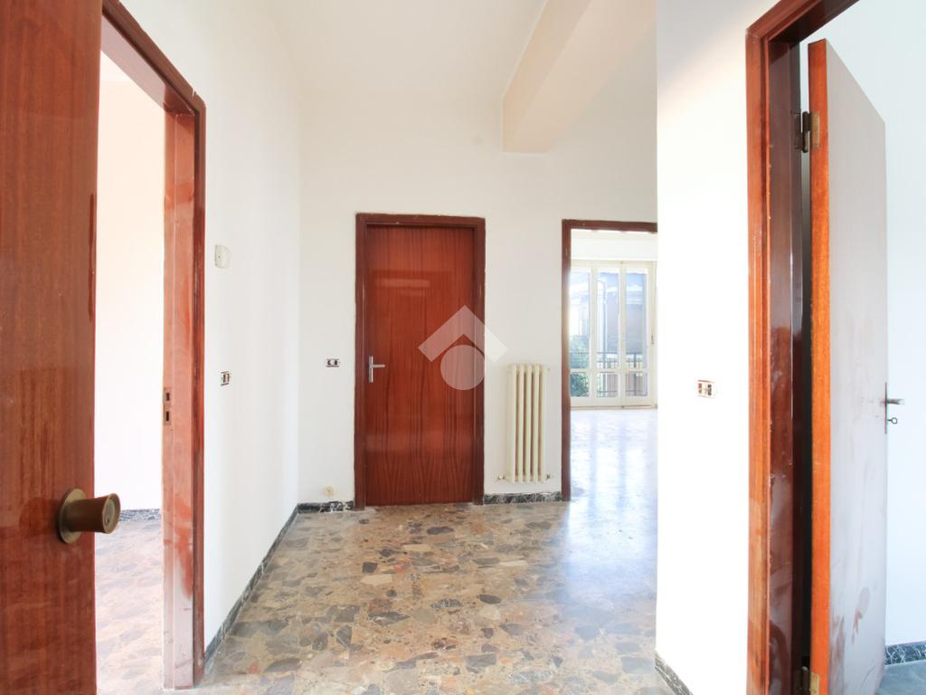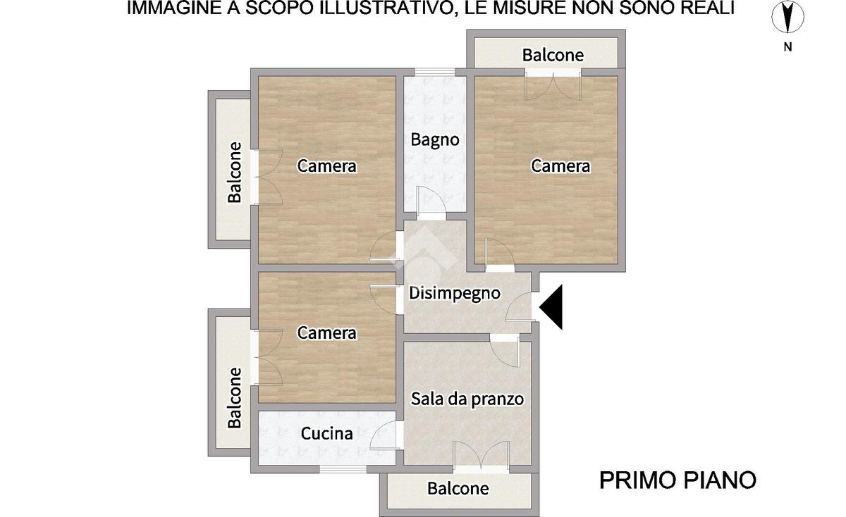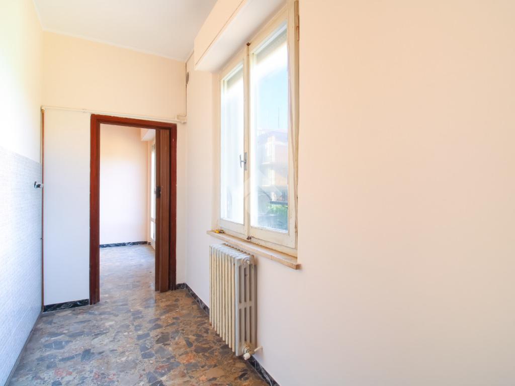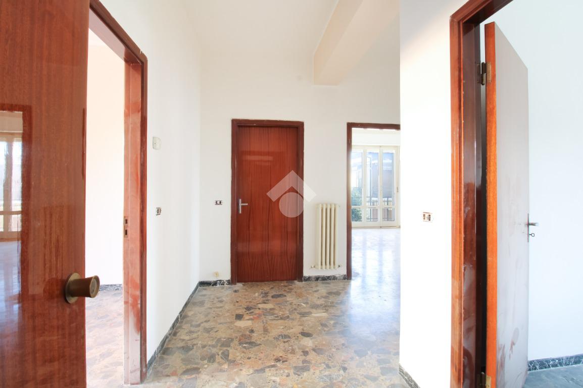Il primo piano ospita un appartamento composto da corridoio di ingresso, sala da pranzo con accesso al balcone, cucinotto separato; corridoio, tre camere matrimoniali tutte dotate di sfogo esterno ed infine bagno finestrato ristrutturato con box doccia.